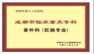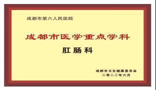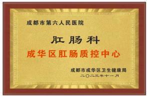 成都市第六人民医院肛肠科是医院重点打造的中西医结合特色专科,是成都市医学重点学科、成都市首批临床重点专科(普外肛肠专业)、城市医学名片•特色专科,是“中国西部肛肠微创诊疗中心”“中国西部硬化注射中心”,是成都中医药大学附属医院、西南医科大学附属医院、川北医学院附属医院、成都肛肠专科医院肛肠专科联盟单位,同时科室牵头成立了成都市第六人民医院肛肠专科联盟,是我院首个专科联盟,也是首个由成都市级医院牵头成立的肛肠专科联盟,此外科室为成都市成华区肛肠质控中心挂靠单位,承担区域内的肛肠质控工作。