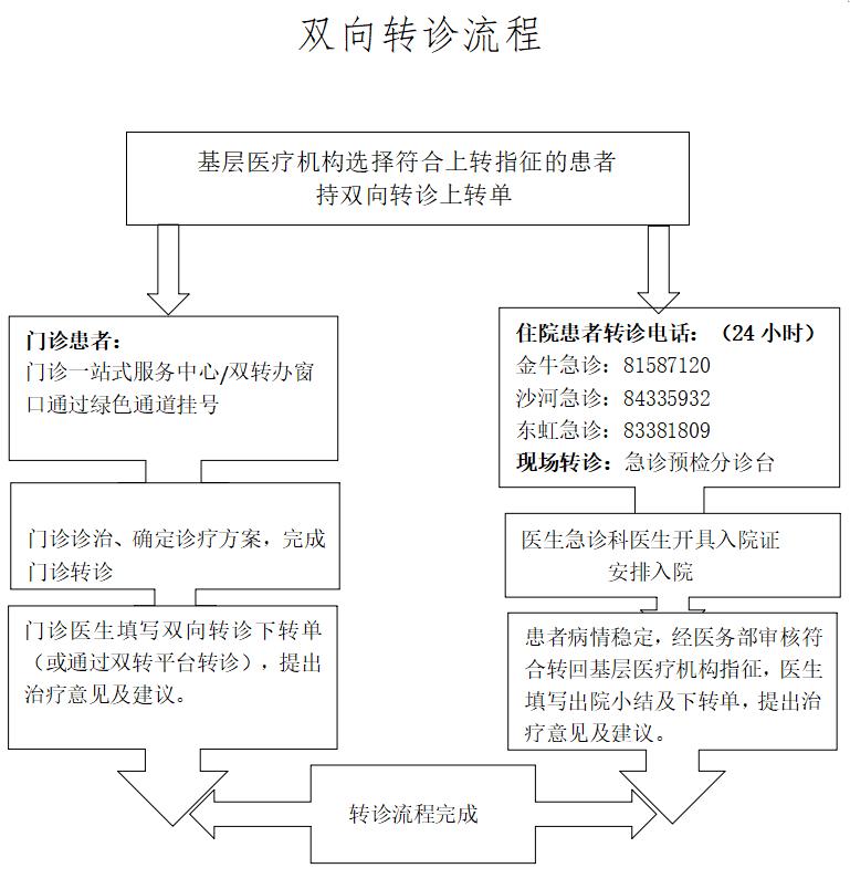 按照四川省分级诊疗相关要求和双向转诊的有关规定,以建立规范的“基层首诊、双向转诊、急慢分治、上下联动”的医疗模式为原则,建立起双方分工协作、互促发展的双向转诊长效机制,为双方提供广阔的联系协作空间。
